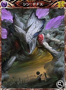 Sin appears and is represented by Dark-elemental cards. He is depicted in a screenshot from a Final Fantasy X FMV and a Yoshitaka Amano artwork.